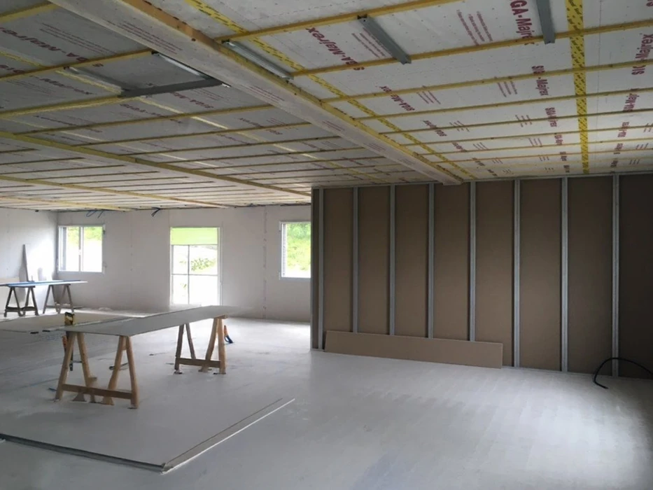 Revêtement final personnalisable selon vos goûts avec plaques de plâtre prêtes à décorer ou autres matériaux de finition haut de gamme.